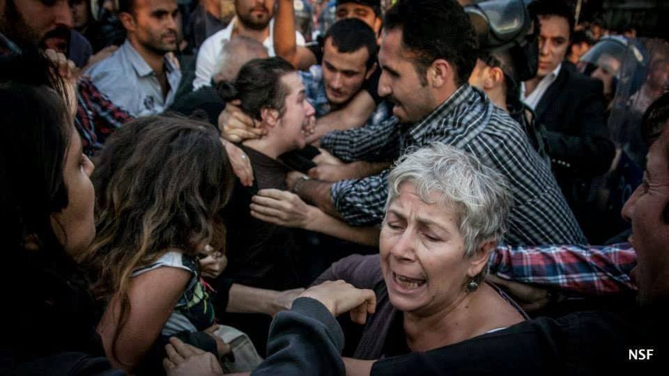 Gezi Direnişi sırasında polis şiddeti sonucu yaralanan ve hayatını kaybeden hayvanlar için Yeryüzüne Özgürlük Derneği olarak yapmak istediğimiz basın açıklamasında uğradığımız saldırının ve dostumuz Burak Özgüner’in gözaltına alındığı anın kaydıdır. Fotoğraf: Nazım Serhat Fırat