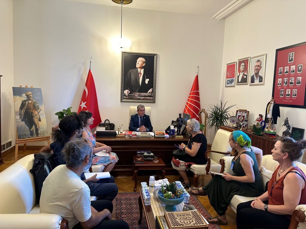 26-27 Haziran 2024 tarihlerinde TBMM’de bulunan milletvekilleriyle ve danışmanlarıyla görüştük. Tecrit ve katliam yasa tasarısına “hayır oyu” vermeleri için yaptığımız toplantılarda, aynı zamanda tasarının değerlendirileceği ve oylanacağı Tarım Komisyonu üyesi milletvekillerine ve danışmanlarına da deklarasyon metinlerimizi sunduk. Aynı zamanda 3 Temmuz’da Gelecek Partisi ve Saadet Partisi’nin grup toplantısında söz alarak kürsüden milletvekillerine bir kez daha #KatliamYasasınaHayır diye seslendik.